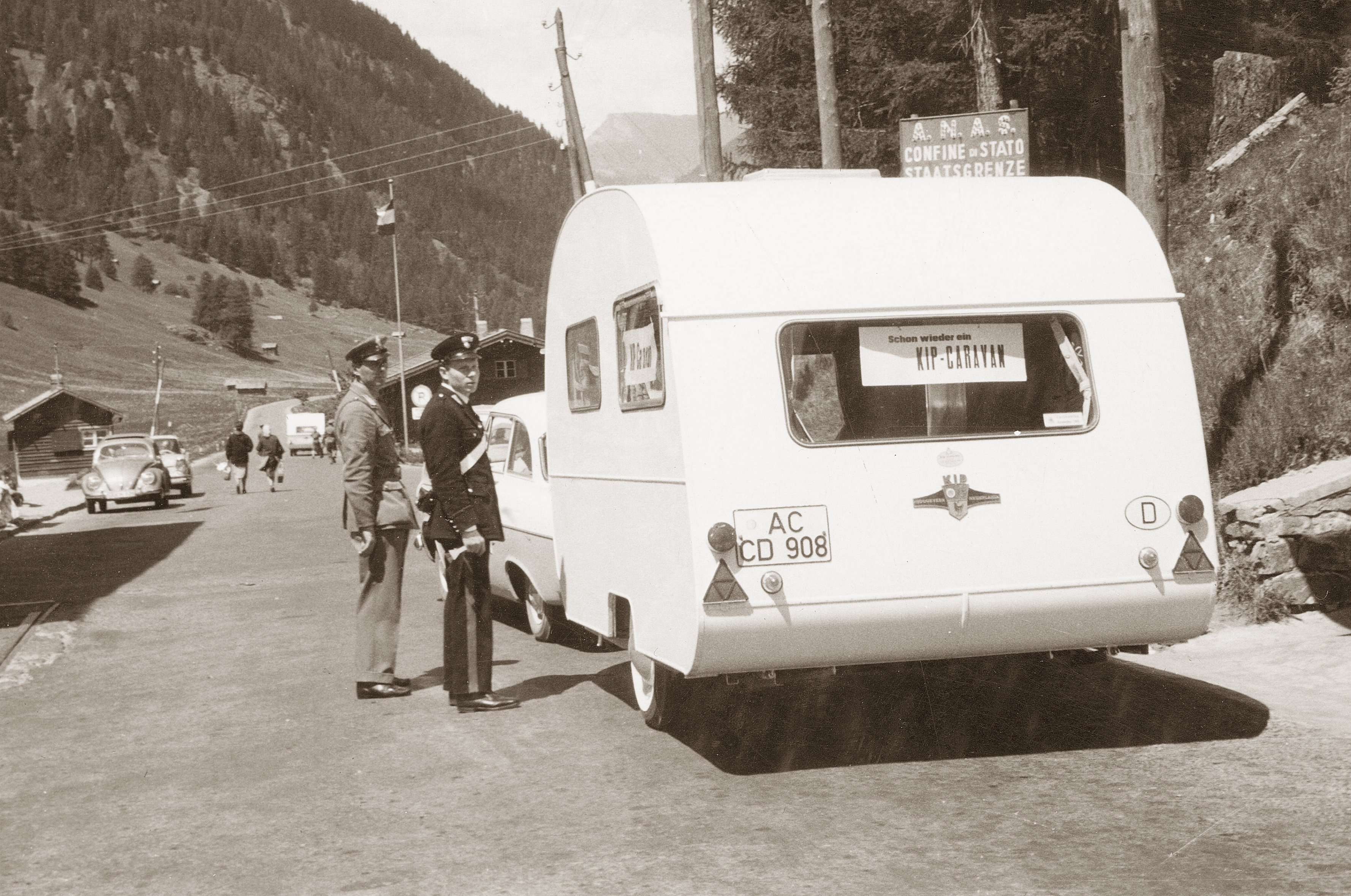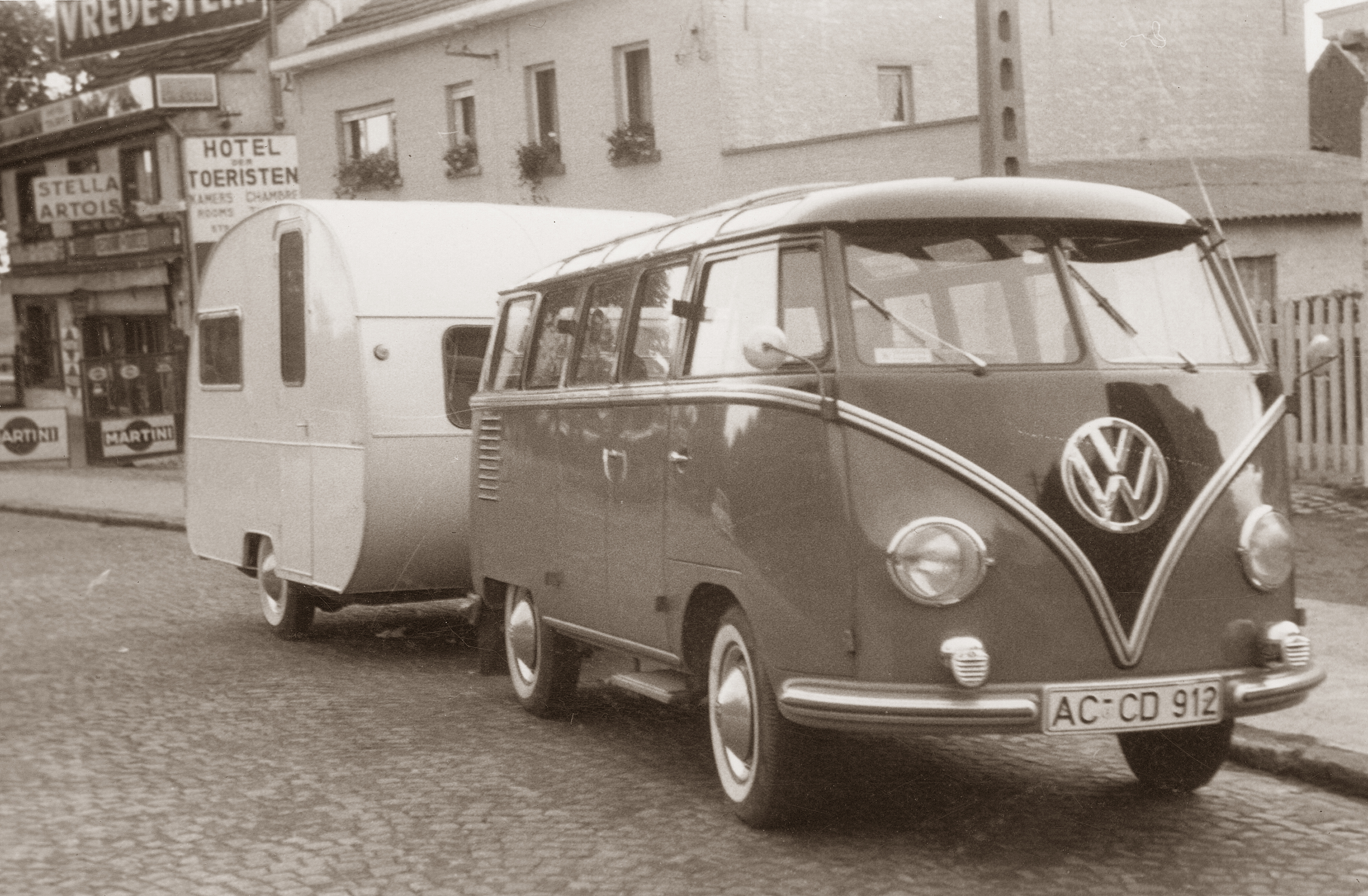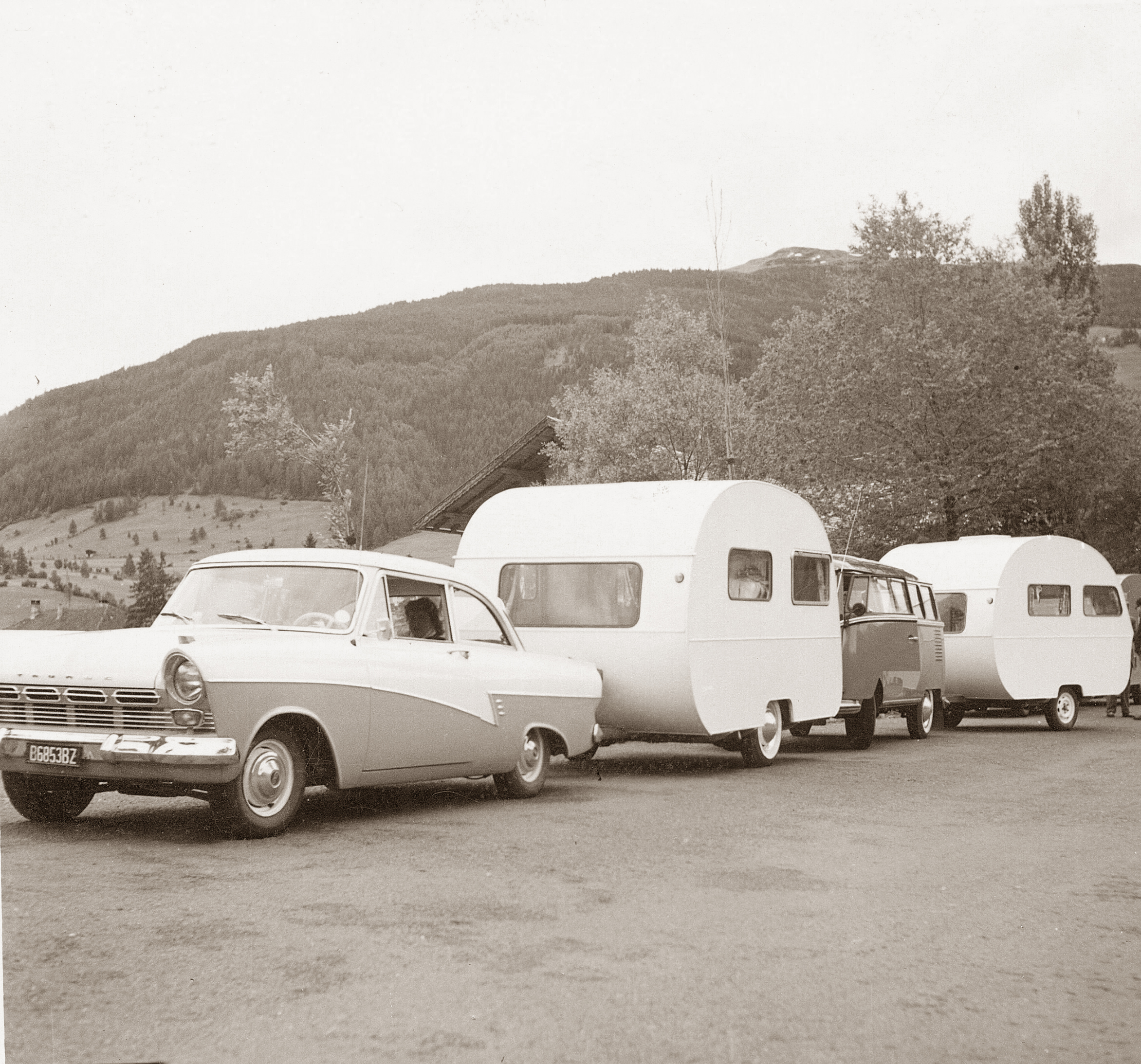 Urlaubsfahrt mit einem Wohnwagen 1958